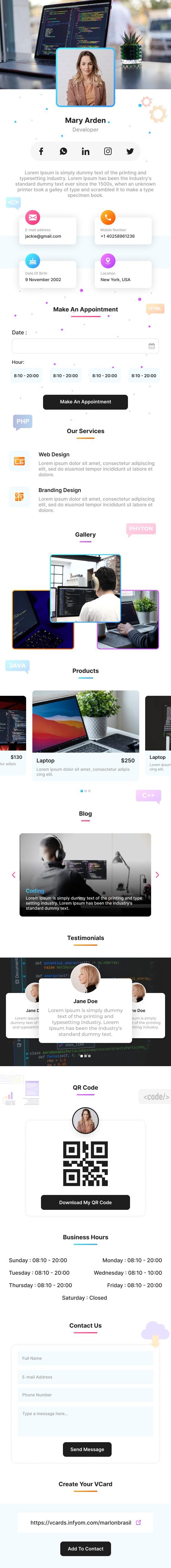 Sites, contatos, mídias sociais e muito mais! Reúna todos os seus contatos em um único lugar e esteja há um clique de distância de seus clientes e contatos. Mais clientes, seguidores e negócios!